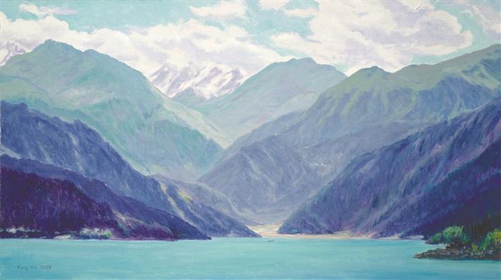 唐寅近几年的创作成果颇丰,从“致境”“光景常新”“春暖花开”“映天印象”“心源化境”和“真际”“临水”“万物有灵”“四季和风”等展览的举办和作品创作可以看出,他的油画风景画在具有自然真实属性的同时,突破对景写生的西画藩篱,更多的是针对自然的有意识剪裁,呈现了中国式的取景造境和意象精神。