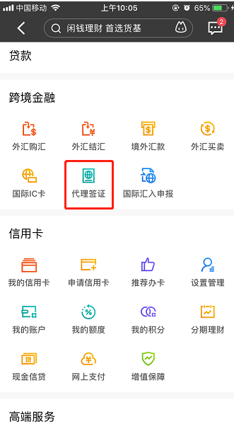 用户只需登录招商银行手机APP,在首页点击“全部”,找到“跨境金融”板块下属的“代理签证”,选择所在城市即可快速便利相应服务。