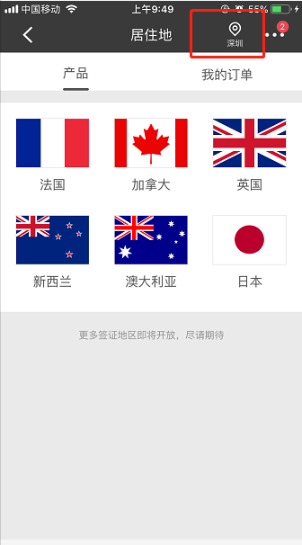目前,深圳地区用户可以办理法国、加拿大、英国、新西兰、澳大利亚、日本六个国家的签证,后续将有更多签证地区开放。