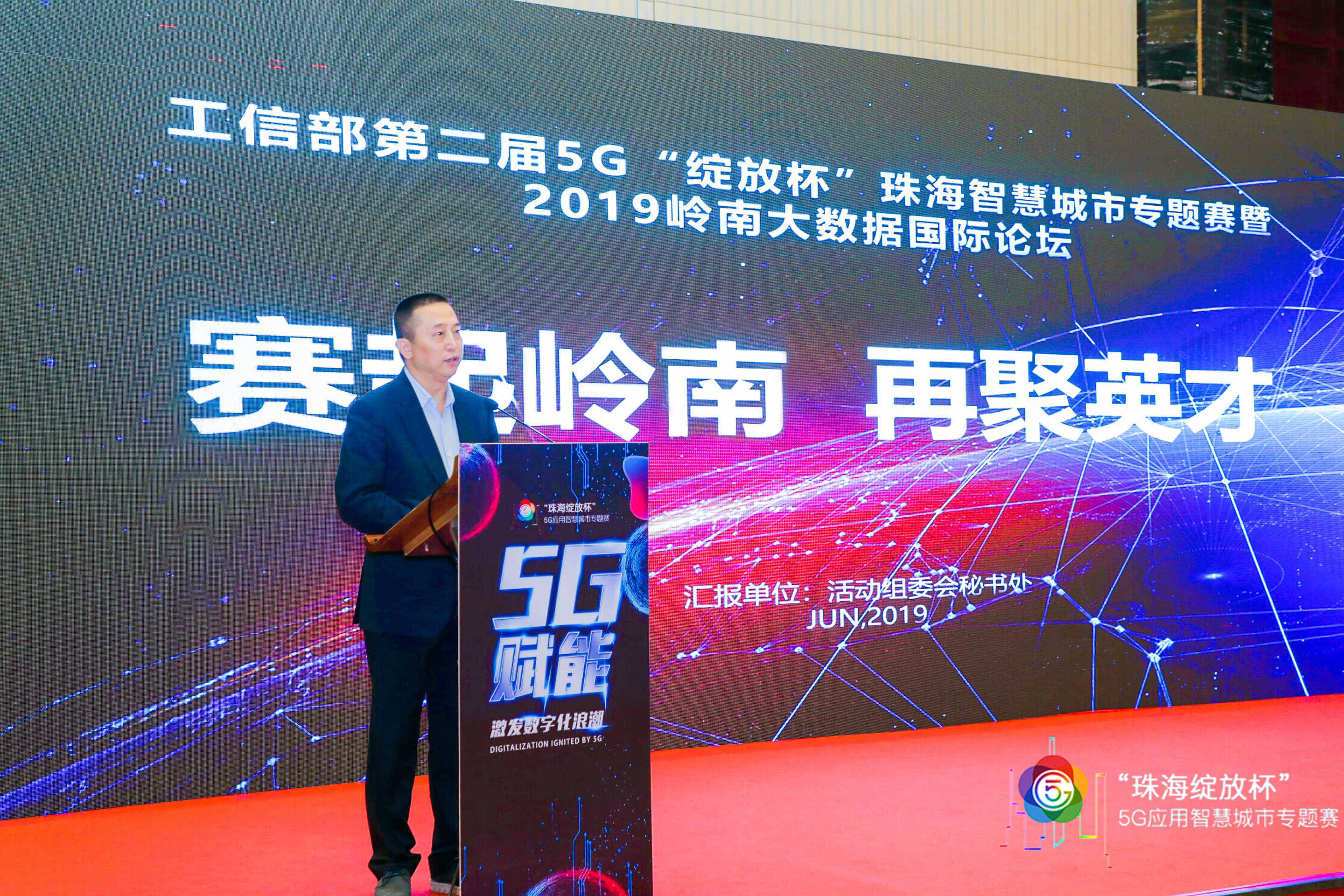 2019年6月6日上午,工信部第二届5G“绽放杯”珠海智慧城市专题赛暨2019岭南大数据国际论坛(简称“珠海绽放杯”)发布会在珠海国际会展中心举办。珠海市人民政府、珠海市工业和信息化局、珠海市科技创新局、珠海市高新区管委会、珠海市人才工作领导小组办公室等政府领导,中国移动、珠海城市建设集团、珠海华发集团、广东城智科技有限公司、珠海市岭南大数据研究院等主办单位领导,来自海内外的创业团队、科技公司代表及来自粤港澳大湾区近百家媒体机构记者共300余人应邀出席。