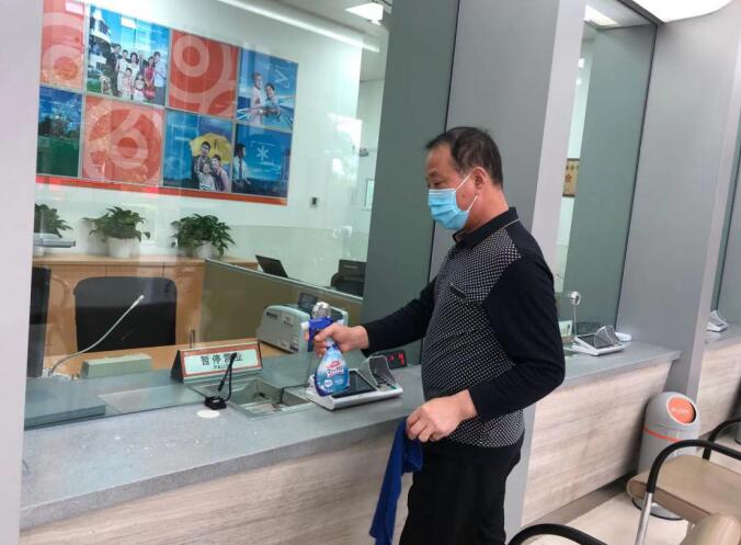 每天正式营业前,网点对营业大厅、自助设备、柜台等进行360°全面无死角消毒。营业期间,每天确保厅堂环境每两小时、自助机具每小时的频率做好消毒工作,营造安全的业务办理环境供客户安心办理。
