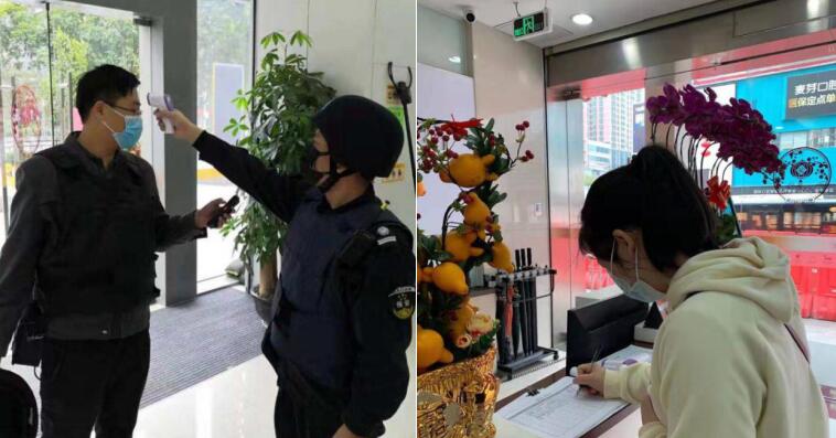 疫情发生后,宁波银行深圳分行第一时间为网点员工准备了体温计、洗手液、酒精、手套、口罩和护目镜等防疫物资,督促员工测体温、勤洗手、戴口罩,做好安全防护工作。网点做好到行客户体温检测和基本情况登记工作,引导客户减少聚集,快速办理业务。