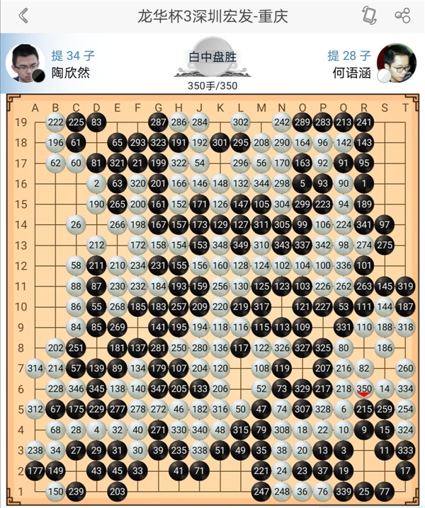 三台陶欣然执黑对阵小将何语涵,局面一直纠结,官子阶段有所失误,最终白棋获胜。四台小将石豫来执白对阵小将李翔宇,白棋进入小官子时候局势领先,可惜下出了一个小勺子,被黑抓住机会形成小转换便宜了几目棋。最终白棋以3/4子差距落败。