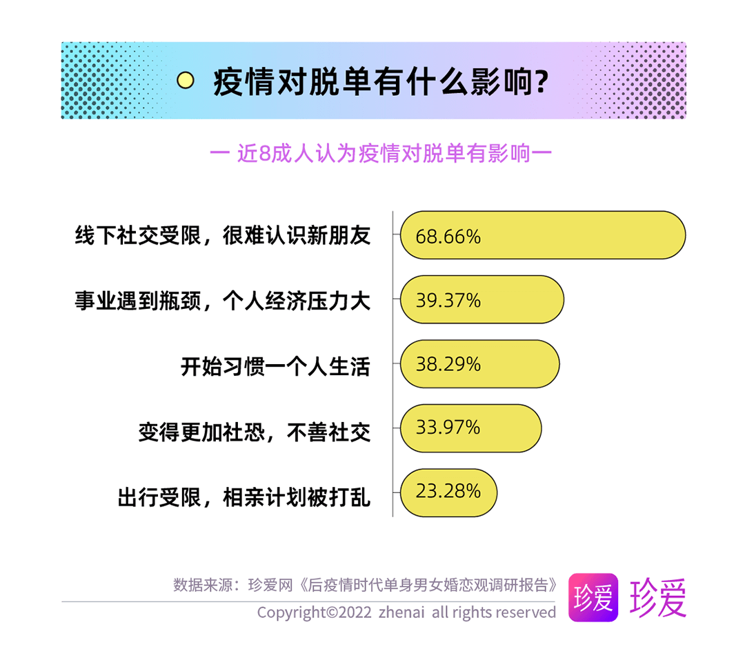 约八成人脱单进程受到一定影响,超七成人使用婚恋社交软件