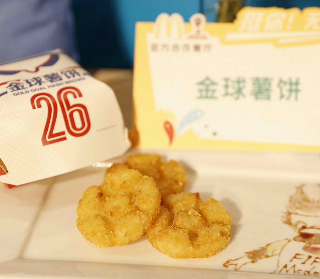 契合足球主题、寓意弧线球的香蕉派和拥有足球外形的金球薯饼