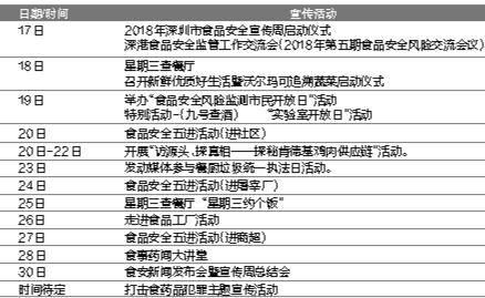 深圳市2018年食品安全宣传周全市层面活动安排表
