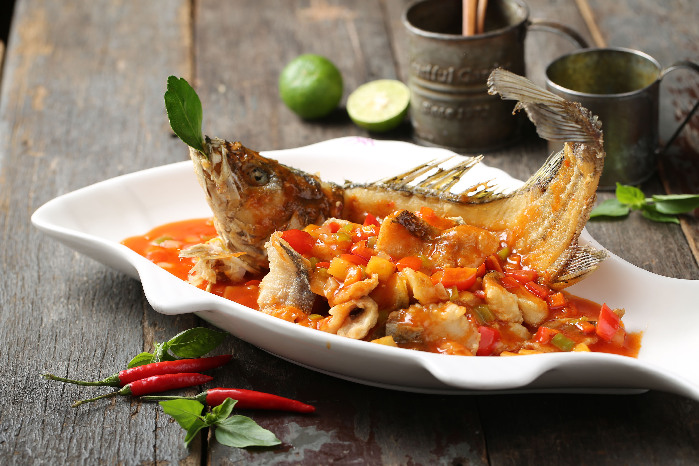 腌制过的鲈鱼热炸后浇上风味独特的三味酱汁,酸辣鲜香扑鼻而来,闻到都让人口水直流!