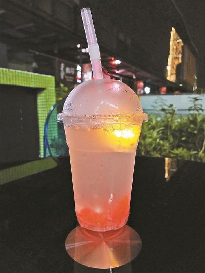 饮料放入了会发光的冰块。 深圳晚报记者 吴洁 摄