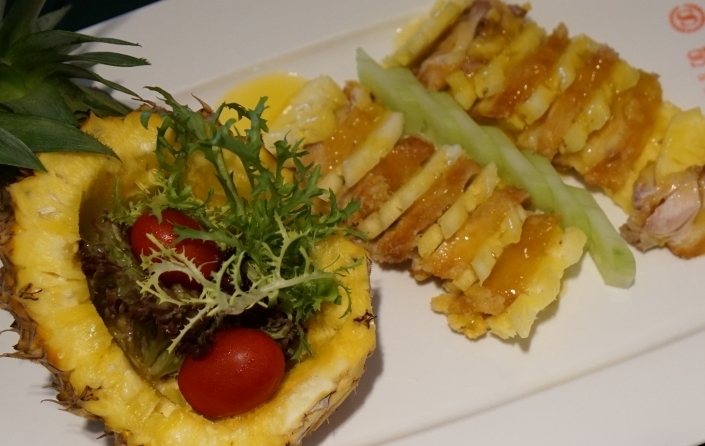 这种做法不使用原只鸭件,而是采用鸭胸肉与酸甜菠萝共烹,刺激食欲的同时,当中加入的黑胡椒也令菜式的味道更加多元化。