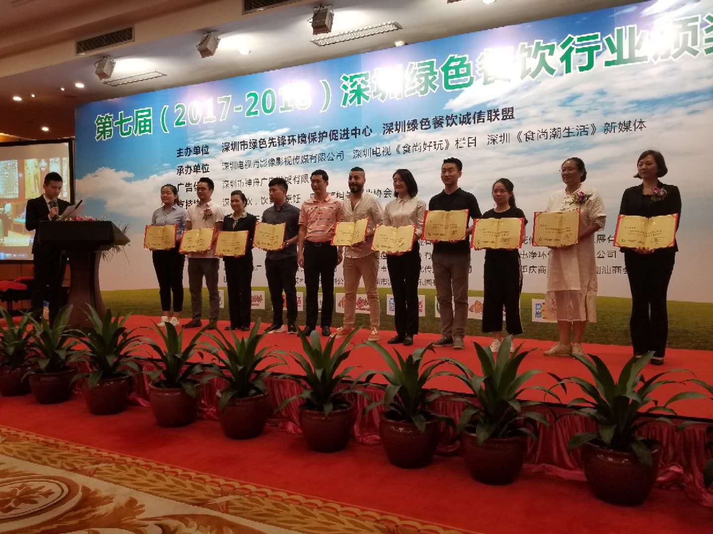 9月19日,第七届深圳绿色餐饮行业颁奖典礼在深圳市五洲宾馆举行,共有四十家餐饮企业分别获得深圳绿色餐饮十大特色优秀名店奖、深圳绿色餐饮十佳绿色诚信企业奖、深圳绿色餐饮十强连锁品牌企业奖、深圳绿色餐饮特受欢迎时尚餐厅奖,十位餐饮行业杰出代表获得深圳绿色餐饮十佳人物贡献奖。