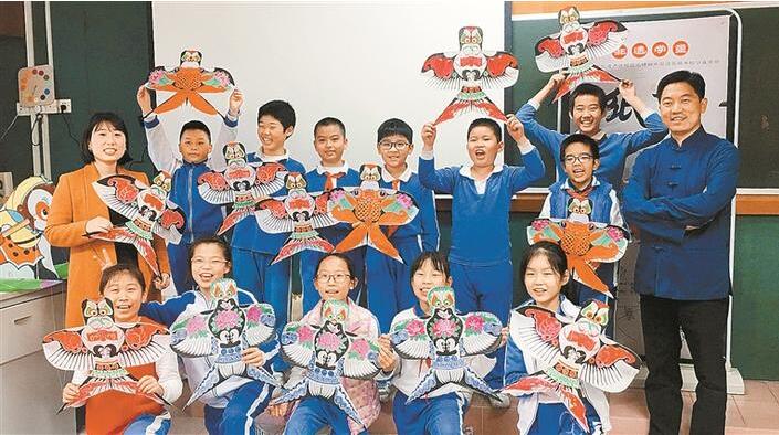 罗湖“非遗学童”活动受到孩子们的热烈欢迎。图为螺岭外国语实验小学的孩子们学习制作出了风筝。