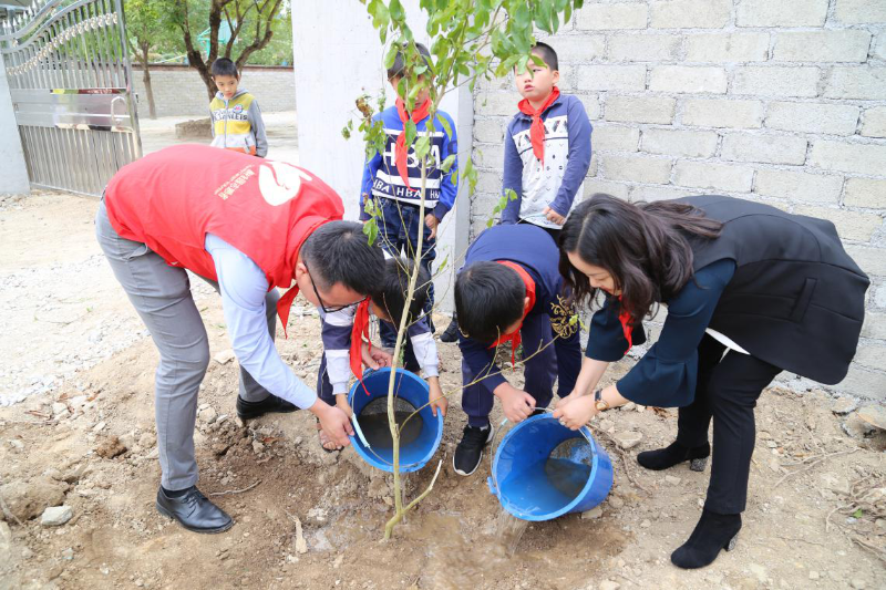 播种希望的幼苗,为绿色公益助力。在“爱心植树林”活动环节,孩子们懂事地帮公益团队夯土、扶树苗、浇水,一起种下代表爱心的树苗,也让这份温暖通过爱心树苗继续传递下去。下午课间活动时,孩子们拿着崭新的篮球、足球、跳绳,欢快地同小伙伴一起玩耍,欢笑声瞬间洋溢在校园里。