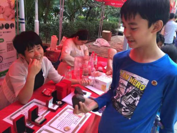 还有深圳锐思科技有限公司热闹非凡的“七巧板智力比拼”现场,成为亲子互动乐园。简单的三角和正方形在市民们的奇妙变换下成为不同的形状。花、鸟、虫、鱼等动物及交通工具七巧板造型栩栩如生,看着自己的思想结晶,在益智欢乐的氛围中,市民们眉开眼笑。