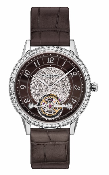 秦岚佩戴万宝龙宝曦系列日历自动上链腕表外置框架陀飞轮超薄腕表(限量28枚)