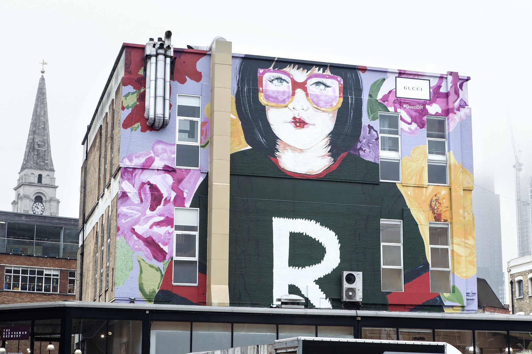 坐落于米兰Largo la Foppa区的艺术墙展示了佛罗里达艺术家Angela Deane的作品。以创作出“白色小精灵”形象而成名的Deane,擅长在老照片上作画,此次她别出心裁地描绘了冬日场景里的小精灵Sam和Wendall,并为两位小精灵穿上饰有各自名字首字母的古驰定制针织衫。位于伦敦东区,临近著名的布里克巷(Brick Lane)的艺术墙则呈现了Ashley Longshore(原名Sarah Ashley Longshore)的肖像画——这位来自美国路易斯安那州的画家、新奥尔良Ashley Longshore Studio画廊的主理人,为Gucci DIY系列绘制了一幅戴着超大号古驰眼镜、身穿饰有字母R的绿色针织衫的女孩肖像,延续其一贯对流行文化和美国消费主义的探讨。这两幅作品早前已发布于古驰社交平台及官网。