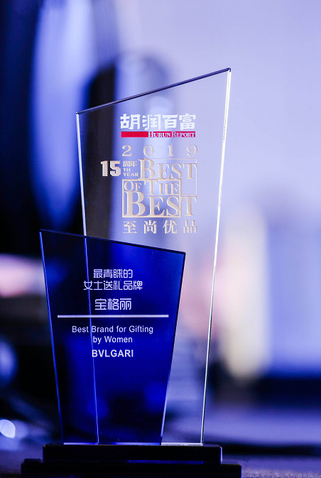 一直以来,宝格丽便受到中国高净值人士的青睐,在众多高端品牌中斩获多项胡润百富“至尚优品”大奖。而在2019年最新发布的榜单中,品牌连续第二年获得“最青睐的女士送礼品牌”( Best Brand for G ifting by Women )这一重磅奖项,荣耀赢得业内对宝格丽的一致认可。而在历经了三年位居第二“最青睐的珠宝” (Best Jewelry)的殊荣上,宝格丽今年突破自我,取得更加傲人的成绩,在众多实力出众的品牌中拔得头筹,一举斩获“最青睐的珠宝” (Best Jewelry)的桂冠。凭借卓越的设计以及对品质的不断追求,再次印证了意大利高品质华丽珠宝品牌宝格丽在中国高端人群中所得到的认可与喜爱。