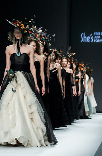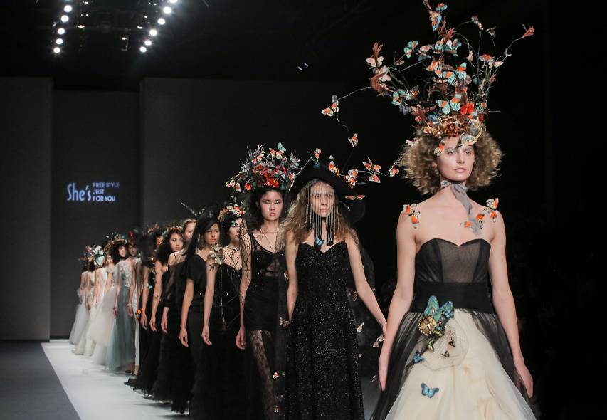 新一季She’ s大秀重现了奇幻森林里的生命消逝与蜕变新生,经历冒险的异蝶,穿越森林之间,历练出王者的风范,张扬的色彩,体现蜕变后的绚烂,一如逆风而行的都市女性,盛放着属于自己的美丽。