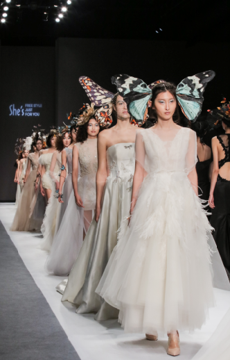 破茧成蝶,只需要一朵花开的时间。所谓蝴蝶精神即蝶变,将蝴蝶绚烂灵动的身姿与勇于蜕变的精神注入大秀;以精湛工艺谱写匠心精神,以浪漫的情怀演绎都市里的时尚哲学。She’s的设计创作就是以这样的艺术执着来创造美、传递美,我们希望热爱 She’s的都市女性都能成为浪漫的生活家。