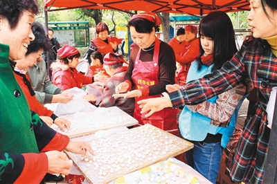 四季花城社区“奶奶厨房帮”为居民包饺子