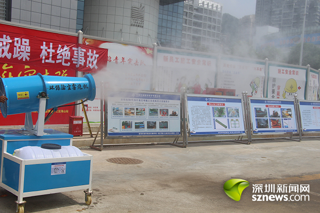 施工单位还在围挡四周、竖井入口、基坑周边、隧道掌子面等施工区域设置全方位的水幕降尘系统,可有效控制和治理地面及空中扬尘,改善工地周边空气质量。此外,该工地采用高强喷雾机,利用不同形状和雾化角度的喷嘴将水雾化,与粉尘凝聚沉积下来,达到消除粉尘、净化空气的效果。