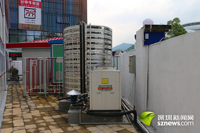 在施工驻地,施工单位还采用了耗电少的空气能热水器。空气能热水器通过吸收空气中的热量,便随时产生热水。在常年平均气温22.5℃的深圳,热源充足,使用起来绿色环保又方便。