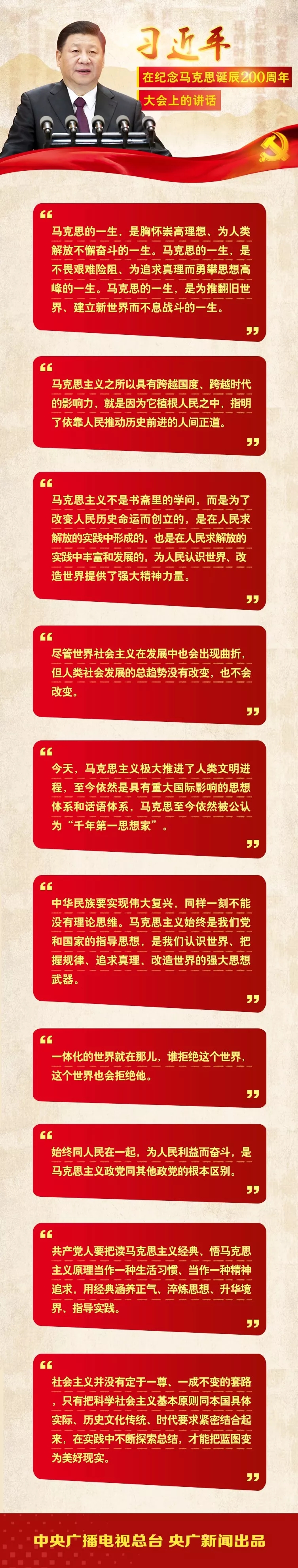 2018年5月4日上午10时,纪念马克思200周年诞辰大会在人民大会堂举行。中共中央总书记、国家主席、中央军委主席习近平出席大会,并发表重要讲话。