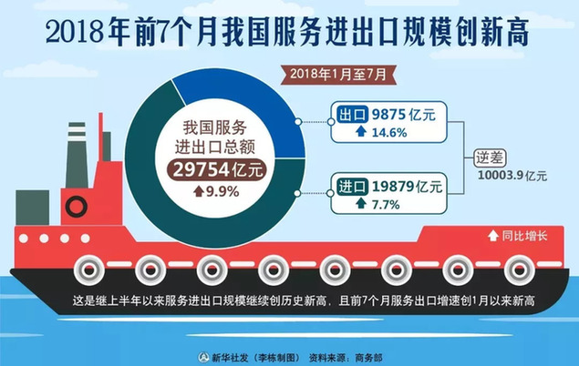 ① 商务部发布数据显示,前7个月我国服务进出口规模创新高。