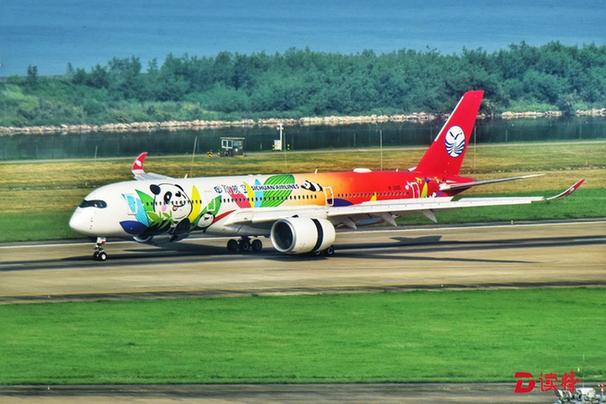 原标题:川航A350飞机首秀深圳 “熊猫彩绘”惊艳深圳机场