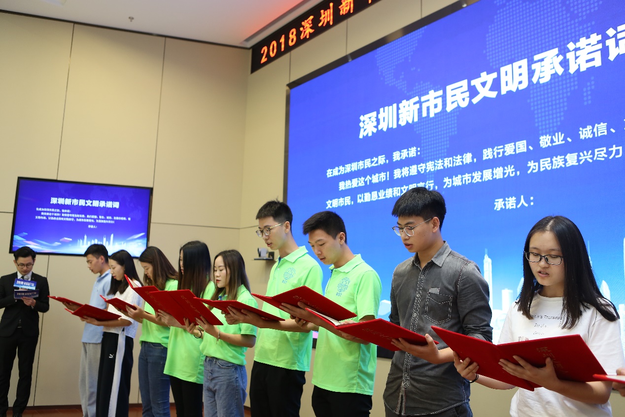 培训课上,上台共同宣读深圳新市民文明公约的环节让十位新市民神情严肃而庄重,他们承诺将从自身做起,履行深圳市民应尽的职责与义务,赴深圳文明之约,成为文明深圳的践行者与传播者。深圳市关爱办副主任华荣、中国著名登山探险家张梁、中国华西企业有限公司党群工作部部长易佳、深圳中国钢结构博物馆馆长张利峰为新市民代表送上一份详尽的“深圳说明书”——新版深圳福袋暨新版市民生活指南。