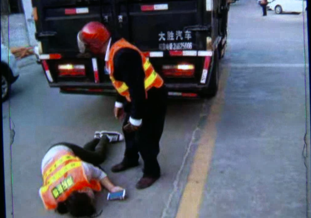 原标题:女环卫工被货车卷入车底……倒地后她竟还在看手机