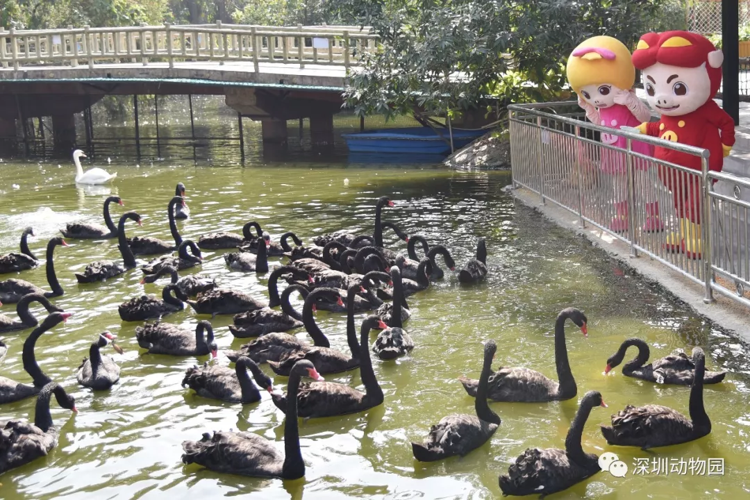 猪猪侠:菲菲你看,是黑天鹅,跟你一样漂亮呢~(深圳野生动物园是特种动物种质资源平台的参建单位,保存着蓝孔雀、矮马、黑天鹅三种种质资源。)