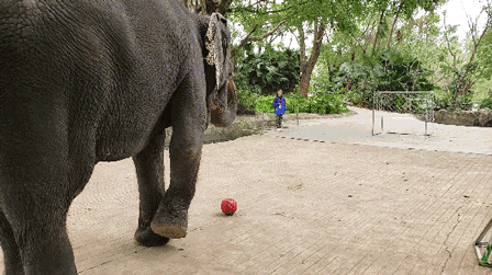 别看亚洲象庞然如山,实则温顺乖巧,是个灵活的大块头。想不到吧,大象会踢足球,还会自己用象鼻剥香蕉……