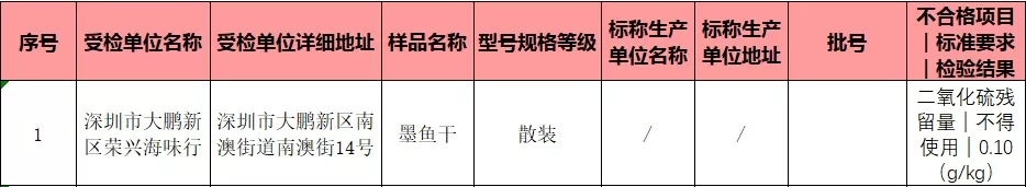 10.共抽检水产制品1批次,检出不合格样品1批次,涉及不合格项目为二氧化硫残留量。