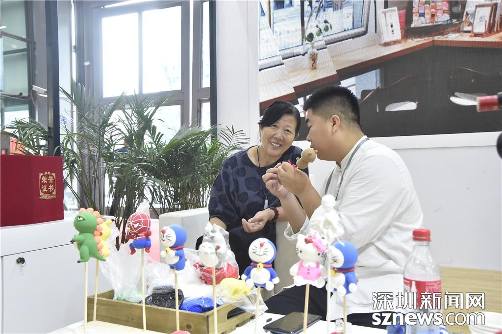 面塑艺人正在向市民展示技艺