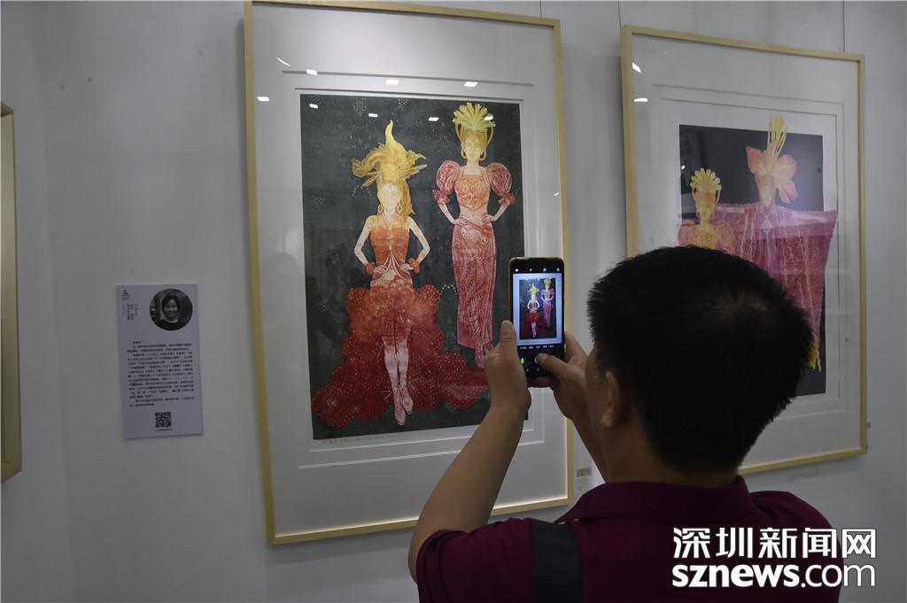 一位市民拿出手机将自己喜欢的画作拍成照片