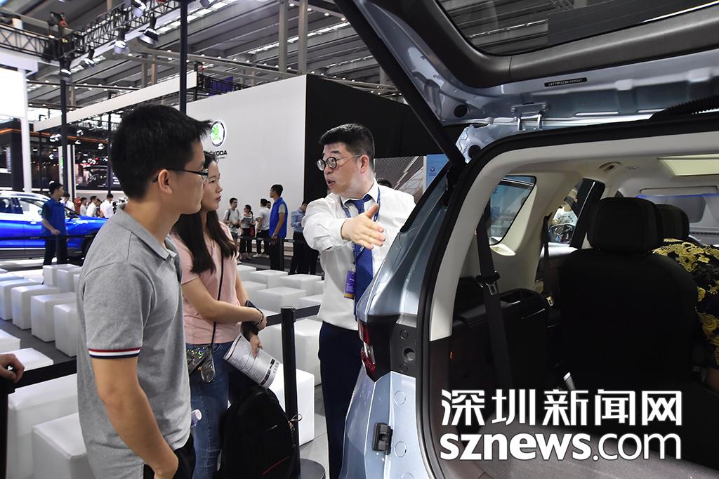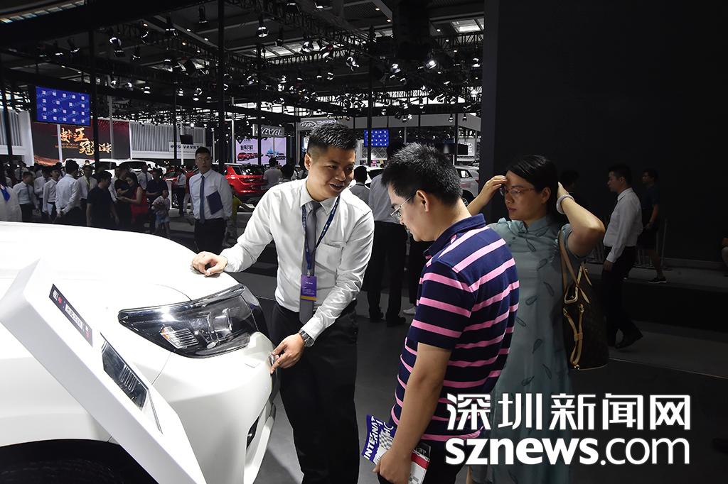 购车顾问向参观的市民介绍车辆性能