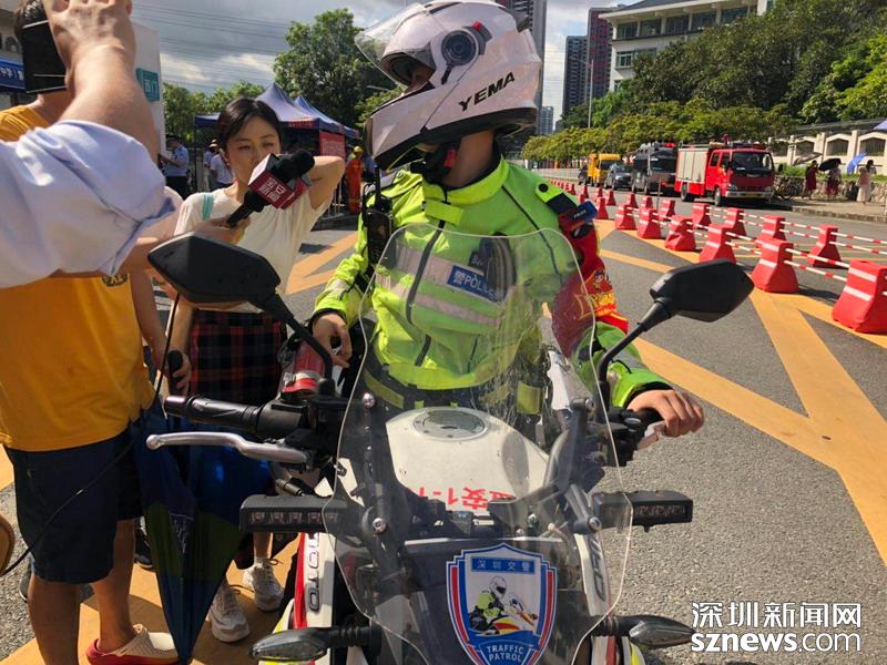【宝安中学】开考之前,一名铁骑护送一名老师来到校门口,他帮助这位老师到西乡新围社区取一份紧急文件,在他的互送下,不到半小时就已到达,老师顺利拿到文件。