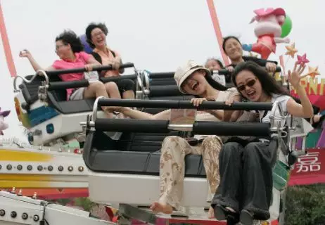 市民在玩刺激的青蛙跳。图自深圳报业集团资料库