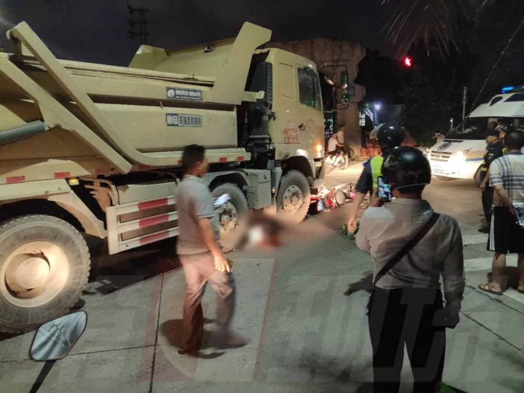 一辆泥头车撞上一辆电动车