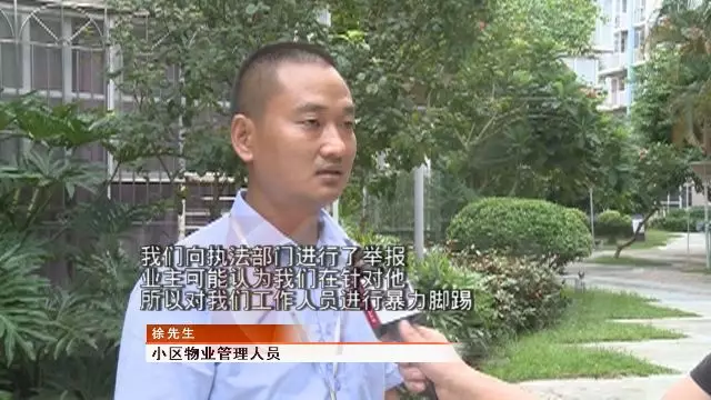 原来兰先生是该小区某栋1楼业主,最近搭建了疑似违建的顶棚铁架,物业发现后通知街道执法队前来调查,没想到,在这期间,兰先生和物业管理人员产生口角,进而演变成打人的事件。
