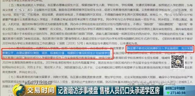深圳市市场监管局市场稽查局法制处副处长贺振华:主要通过引人误解的内容误导购房者。比如说一些楼盘,说下楼即到达某某实验学校,实际上,它离这个学校有一定距离。有的楼盘宣传说,享有一站式无忧的顶级教育资源,容易误导购房者,也容易引起后期的矛盾纠纷。