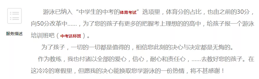 小编了解到,目前的游泳报考生大多是从小在校外自费训练,多年来需要花费高额学费及投入大量精力。尽管新的中考体育考试办法尚未确定,但不少商业培训机构已嗅到商机,迅速做出了反应。深圳几家大型培训机构网站上,针对不同年级适用的中考项目一一列出,最新的《征求意见稿》也被贴在了2022年中考部分,并强调对拟新增的项目同样提供相关服务。小编网上随手一搜,到处都是游泳培训班的广告: