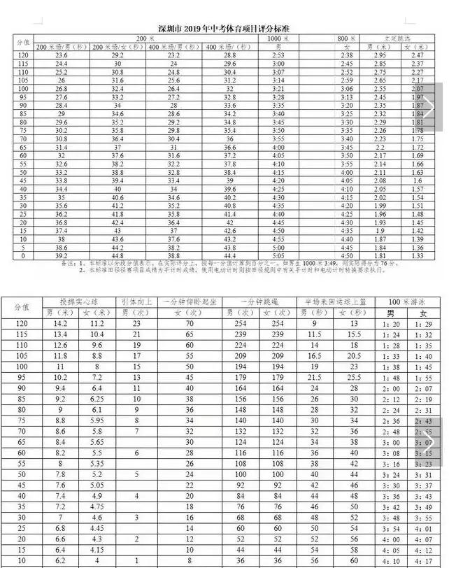 ▲深圳市2019年中考体育项目评分标准