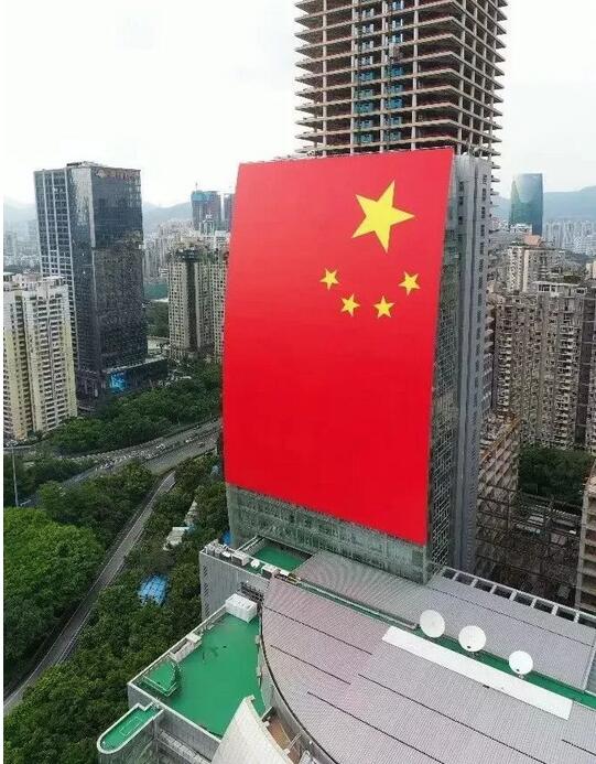 9月14日,一面巨幅国旗在深南大道上的广电大厦楼宇立面上亮相,壮观场面刷爆了深圳人的朋友圈。