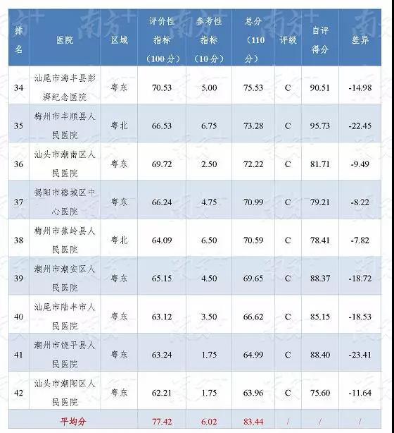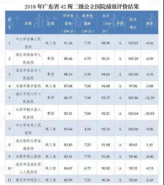 2018年广东省42所二级公立医院绩效评价中包含深圳2家医院,其中