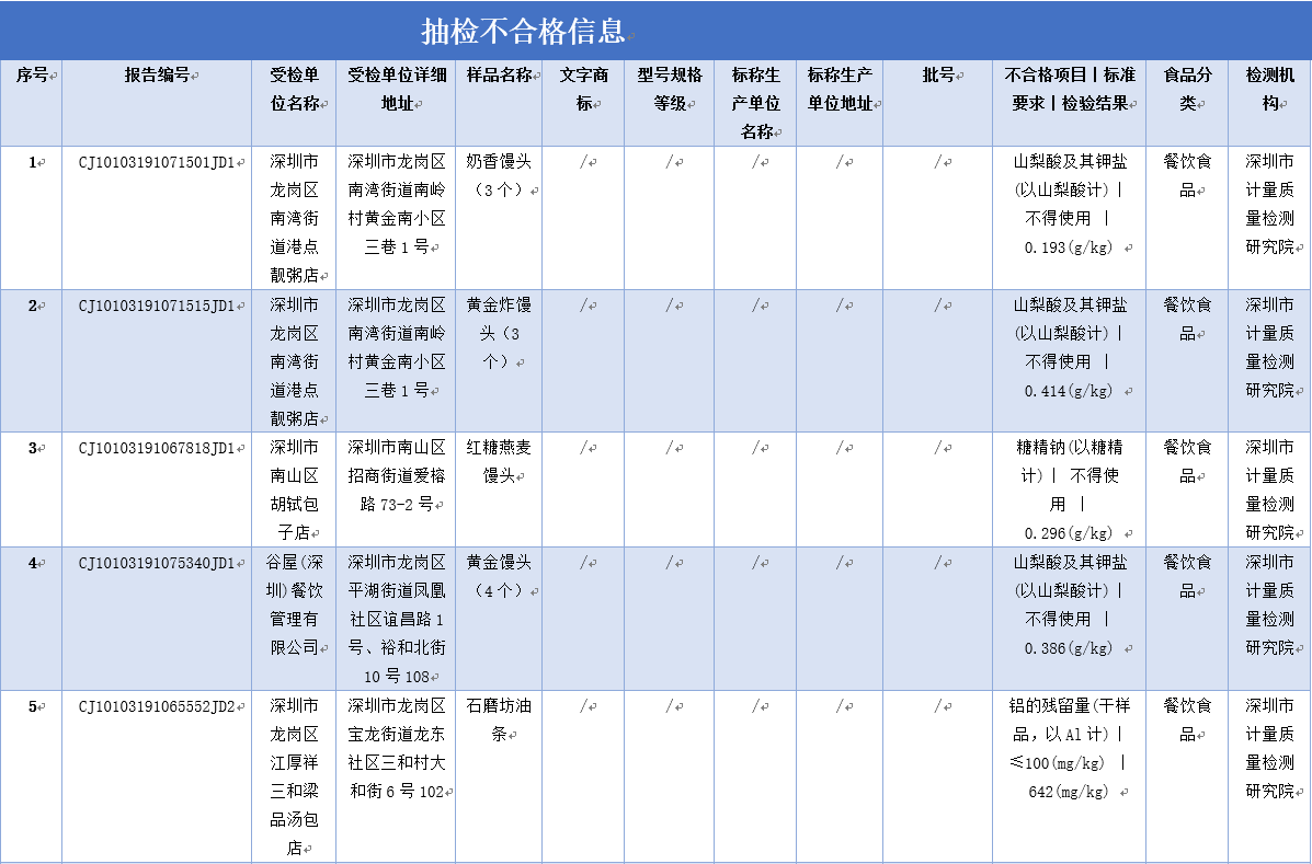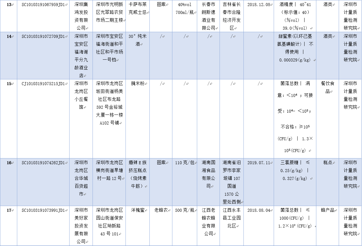 见圳客户端·深圳新闻网2019年12月2日讯 为保障深圳食品消费安全,深圳市市场监督管理局于2019年8-9月组织对生产、流通、餐饮环节的食品开展了专项抽样检验工作。