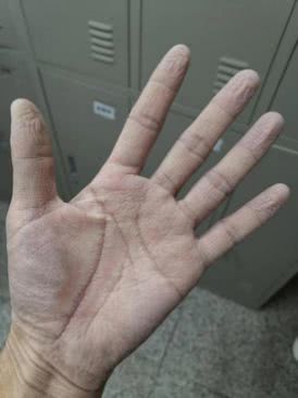 28岁的王涛下夜班后,脱下厚厚的防护服,摘下手套,用手机拍下了自己习以为常的手。