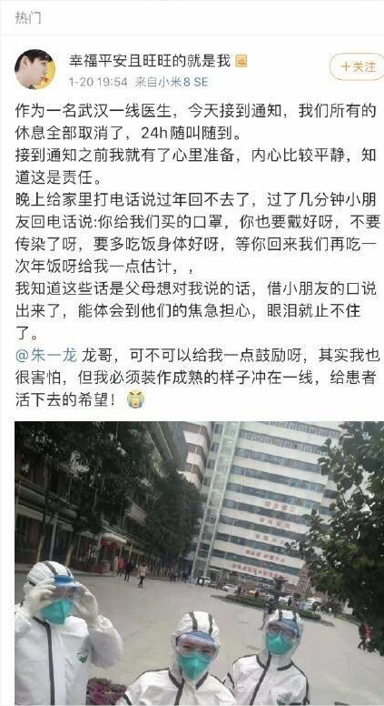 为了不让家人担心,还有年轻医生发信息“有需求叫我,我可以上,不过别告诉我妈妈,省得她担心。”