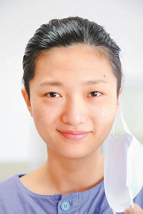 黄青青性格开朗,适应能力强,她平时不爱吃的胡萝卜、包菜等食物,但到了一线再也不挑食了。身材瘦弱的她在忙碌十多天后有些消瘦,但她总是打趣道:“别看我瘦,力量可大着呢!”协助病人翻身,耐心为病人喂饭,只要病人需要的,她都会尽自己的全力做好,病区的病人也为她竖起大拇指。