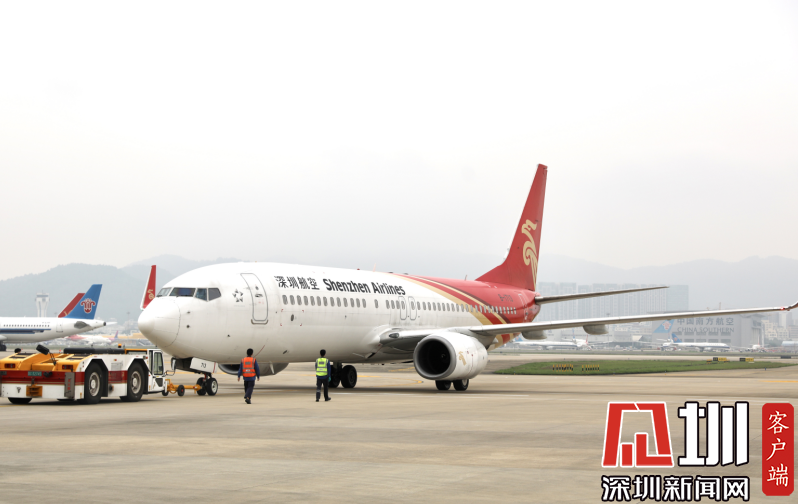 深航今天执飞首班深圳—武汉航班。(钟鸿冰摄)
